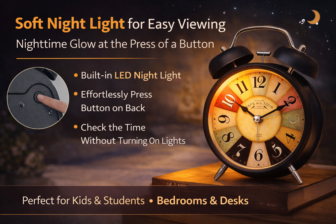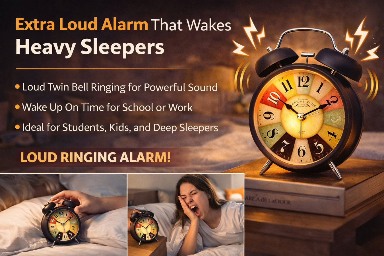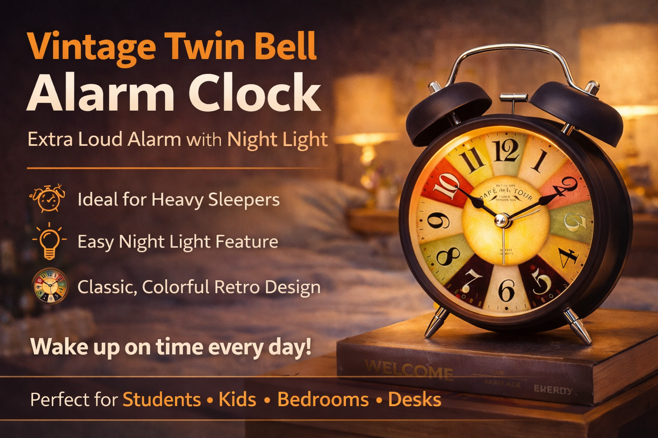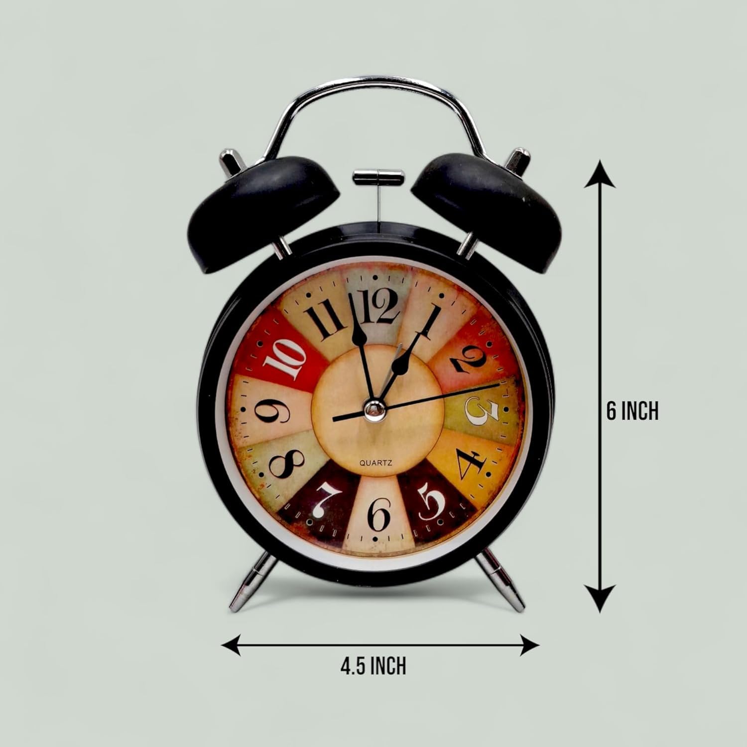 Metal Vintage Twin Bell Alarm Clock, Colourful Dial